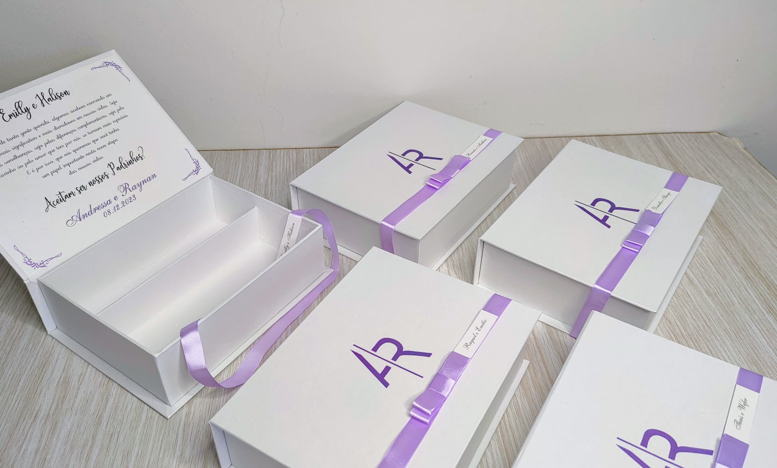 Caixa personalizada para pais e padrinhos