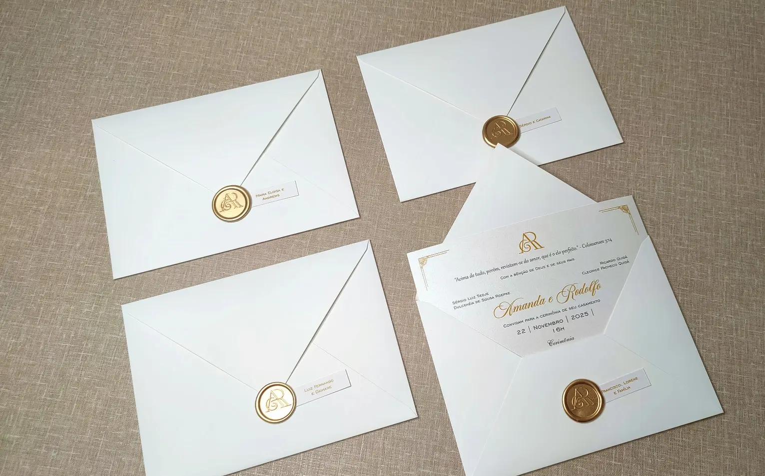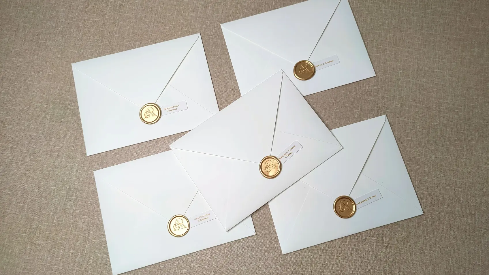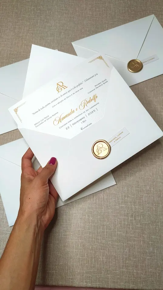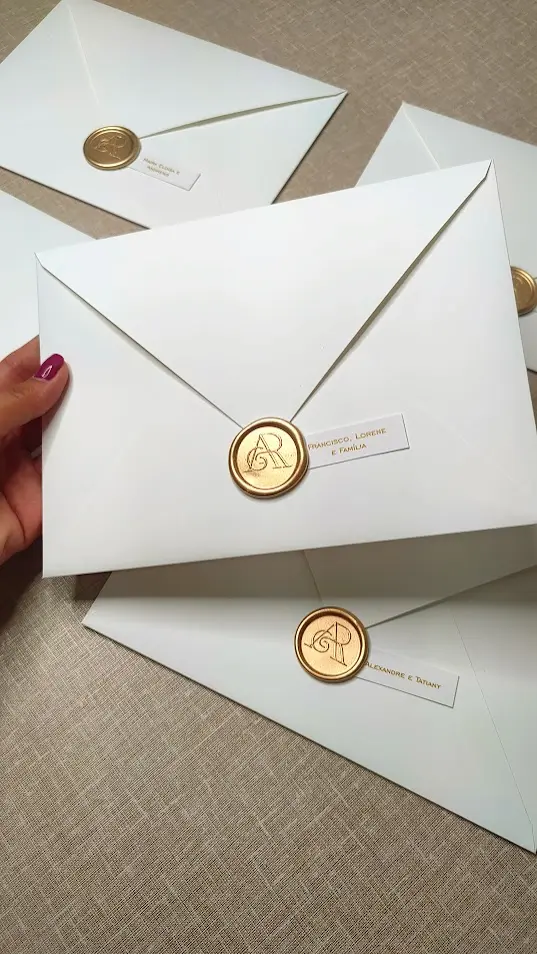 Impressão interna: Digital Fechamento: Lacre de cera dourado personalizado